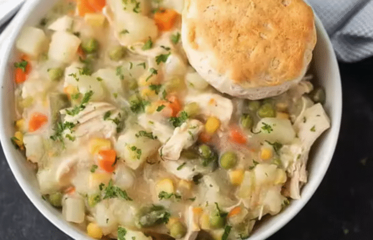 - Serve: Serve warm and top each bowl with a biscuit with serving. Enjoy!